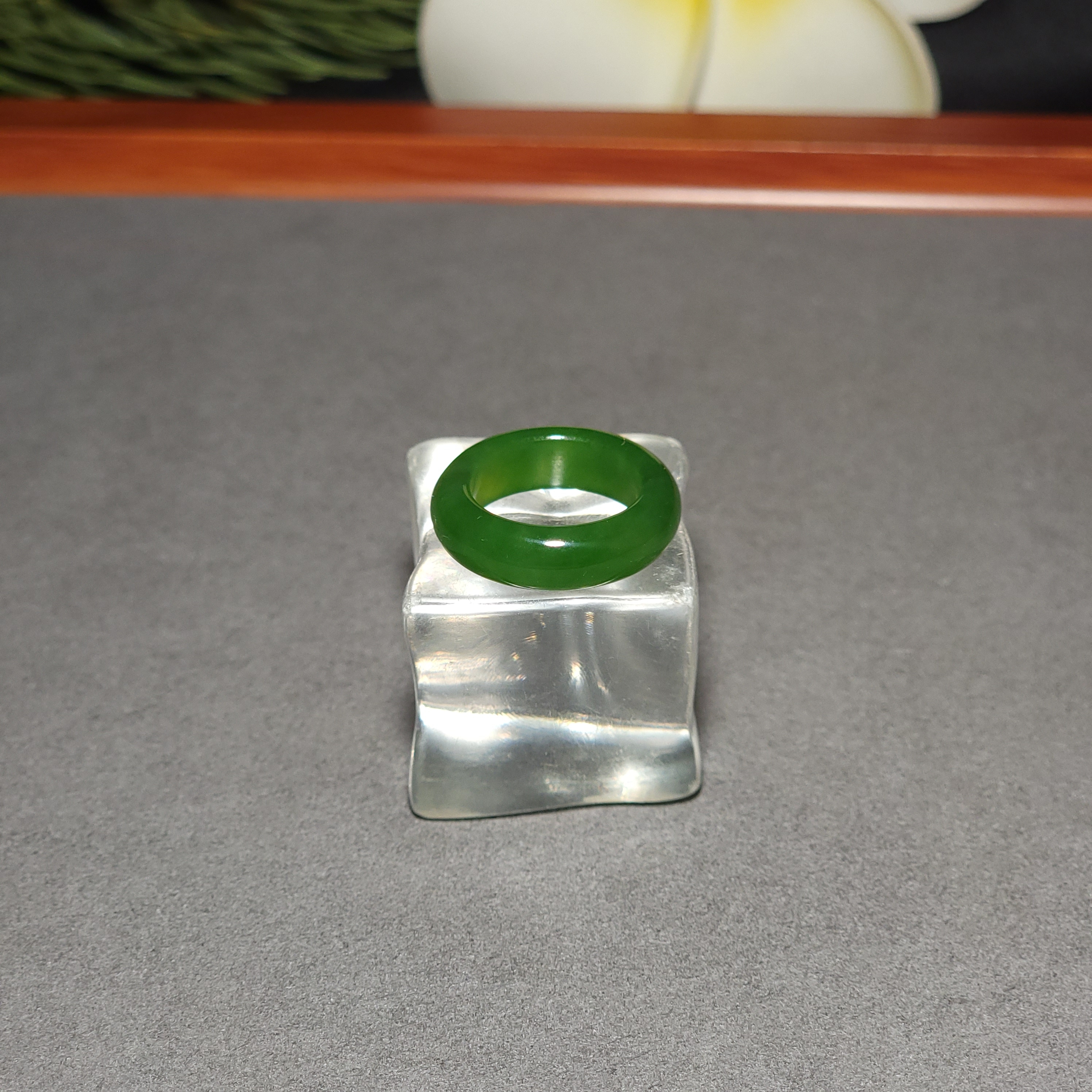 新疆的猫L092502 3.2克内径15.5mm脂粉高色调油亮阳绿色碧玉指环