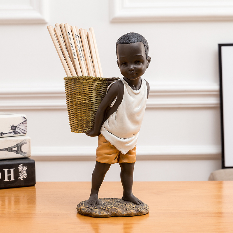 创意个性非洲人物男孩笔筒收纳摆件工艺品办公室装饰实用生日礼物