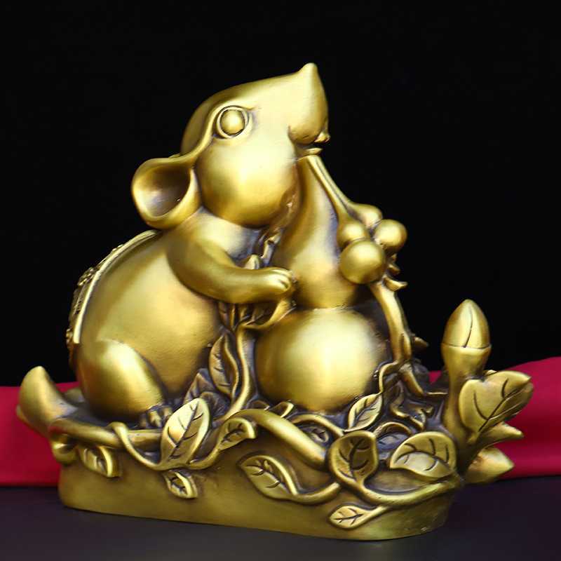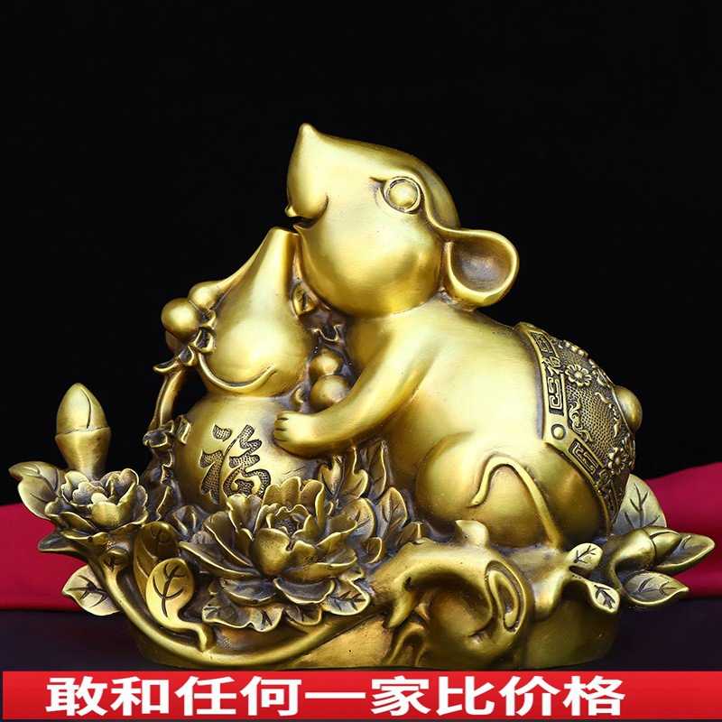 新款直销黄铜老鼠摆件生肖鼠金钱福禄如意鼠聚宝盆吉祥鼠家居办公