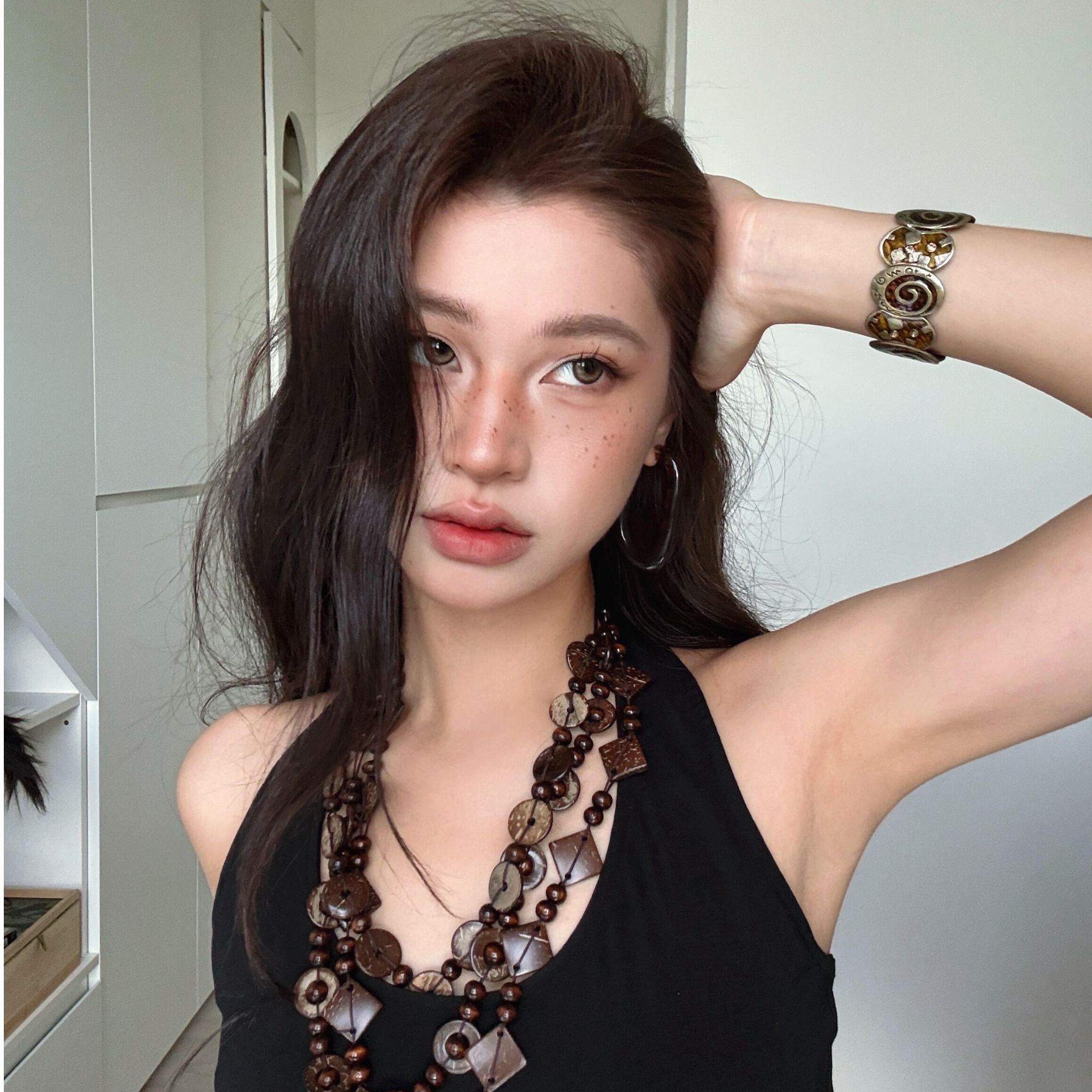 小众设计感波西米亚风串珠椰壳项链复古民族风设计双层叠戴毛衣链