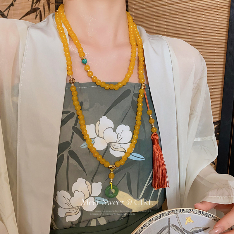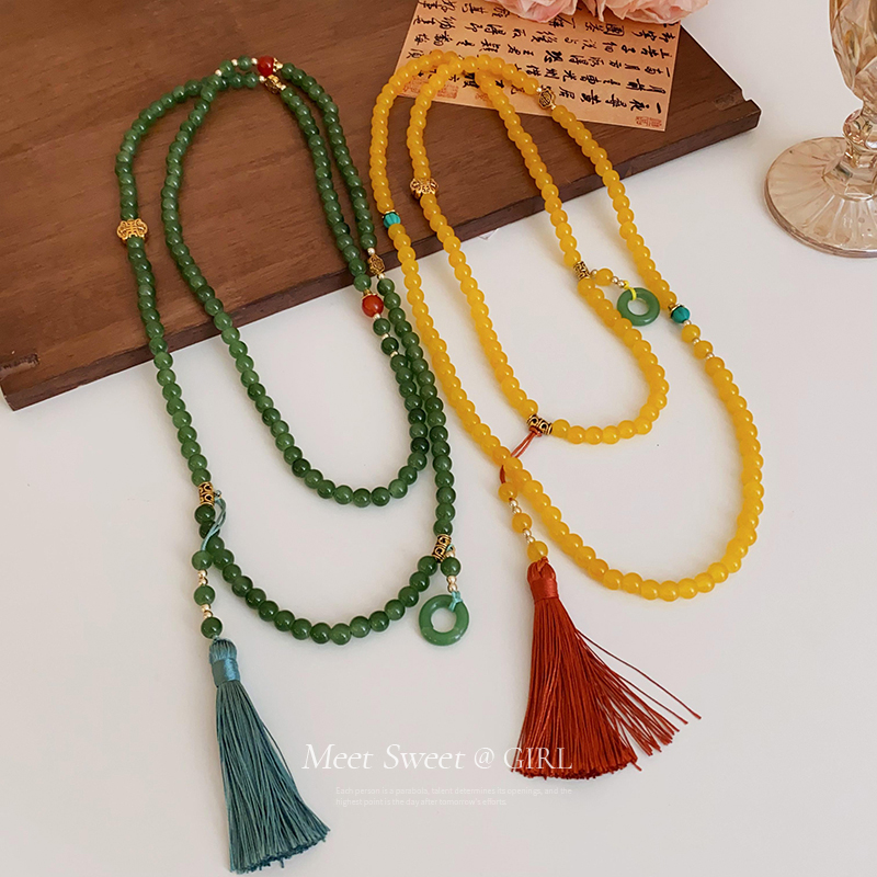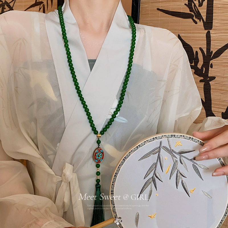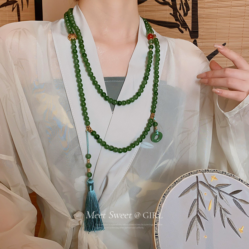 古风绿色琉璃串珠新中式国风项链马面裙配饰璎珞流苏女款2025新款