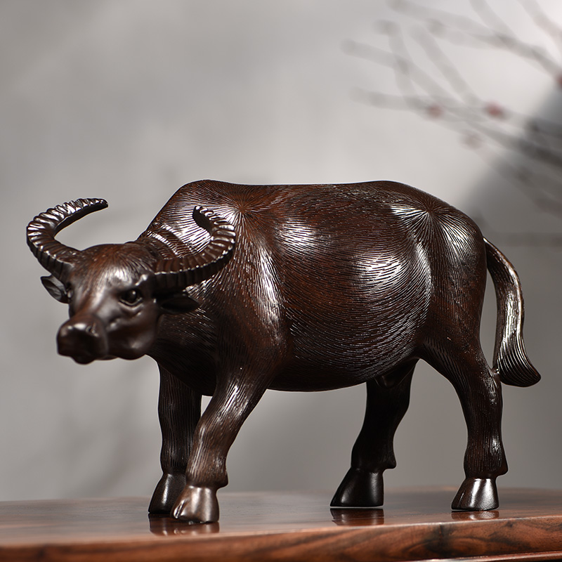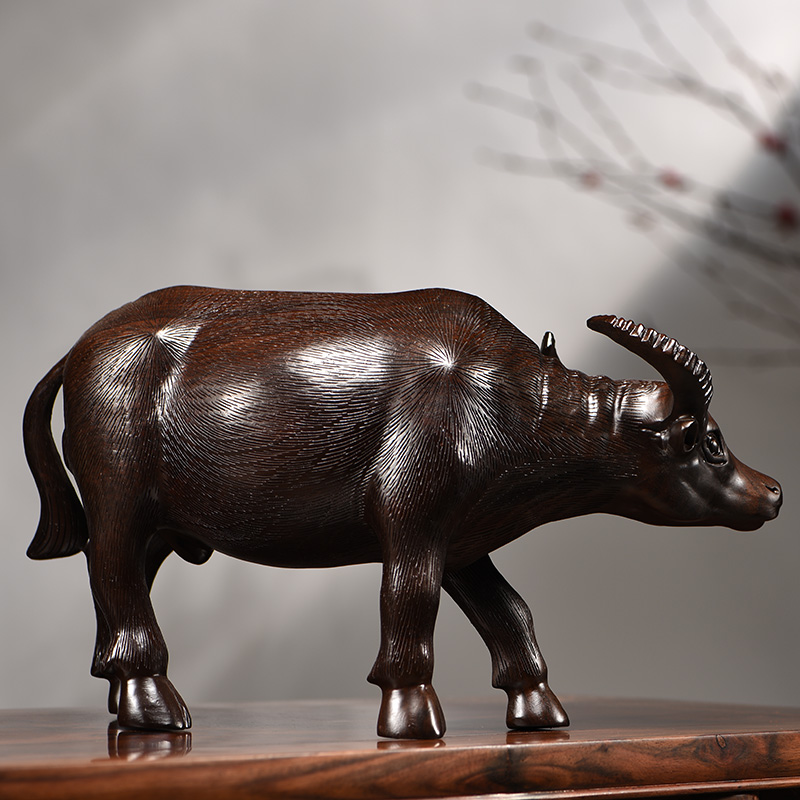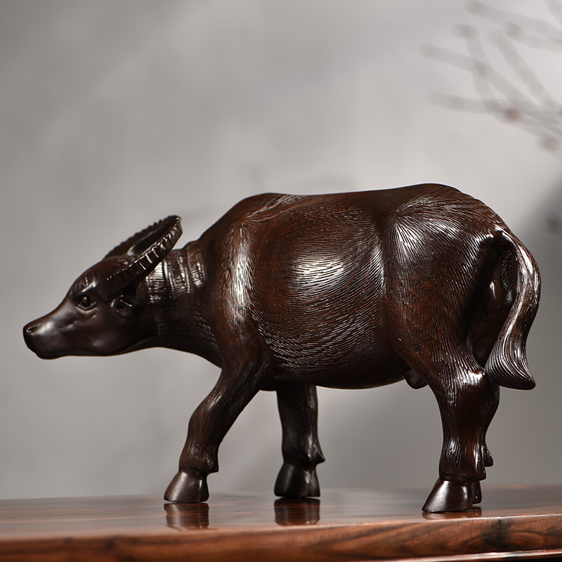 黑檀木雕水牛摆件实木生肖牛家居客厅办公室桌面摆设红木工艺礼品