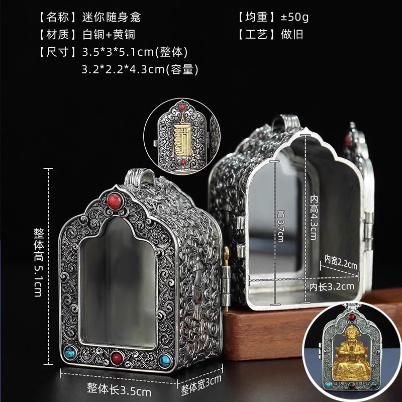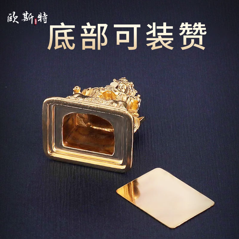 欧斯特全鎏金《五爷》室内家用嘎乌盒《广济龙王》铜制小吊坠