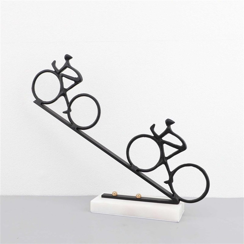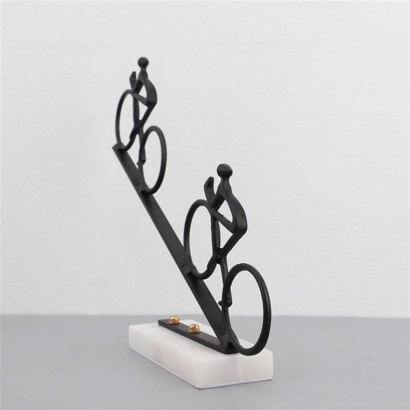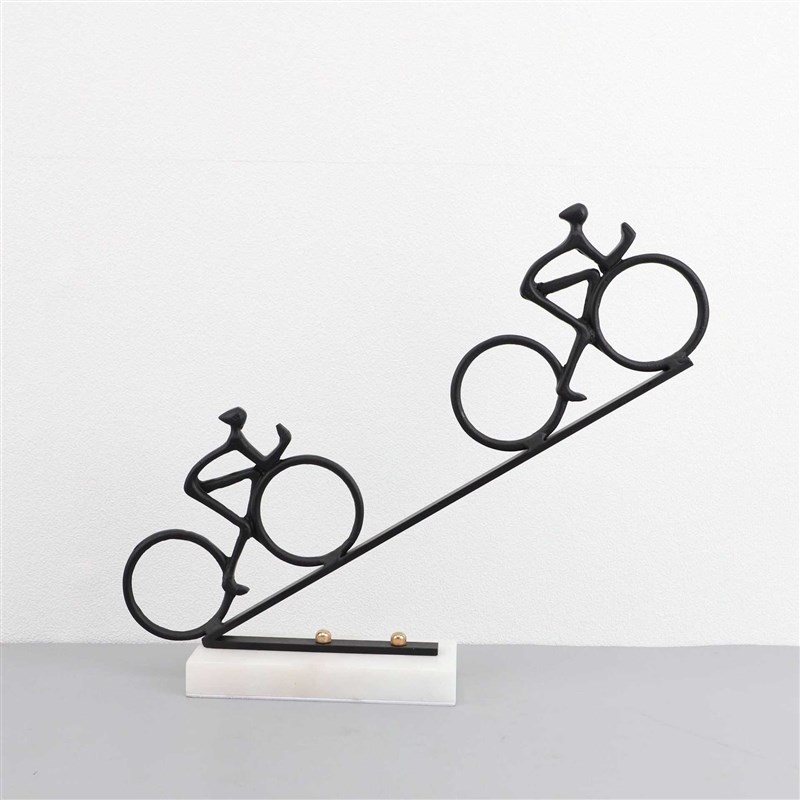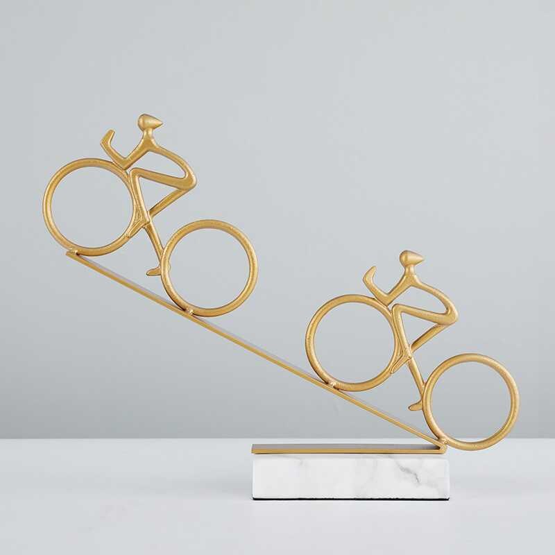 北欧创意铸铁大理k石自行车人物摆件客厅客样板间玄关家居软装饰