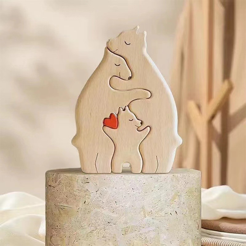 木质母子熊套装拼图卧室客厅桌面熊抱一家人摆件实木工艺品