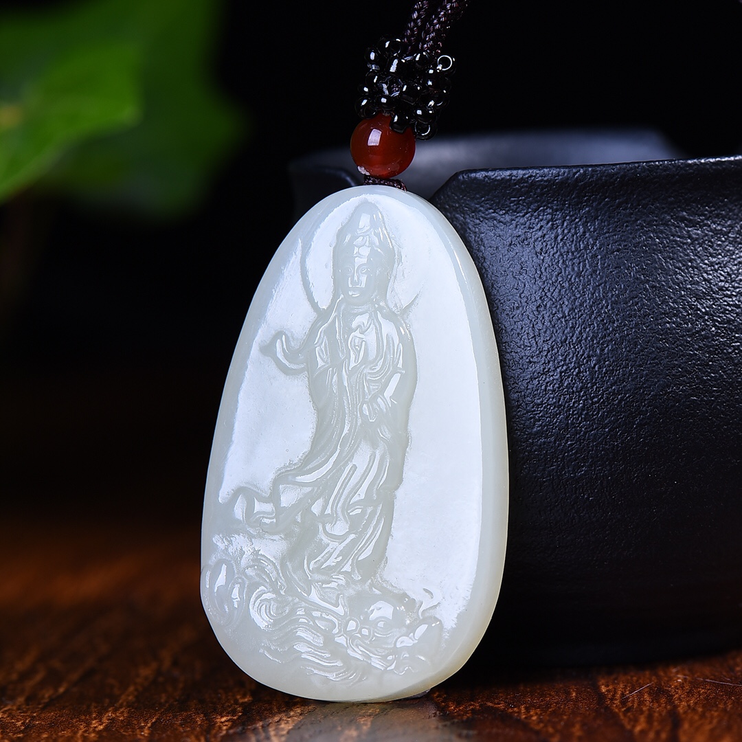 新疆和田玉羊脂玉白玉青白玉乘龙观音平安牌吊坠男女士款挂件玉坠