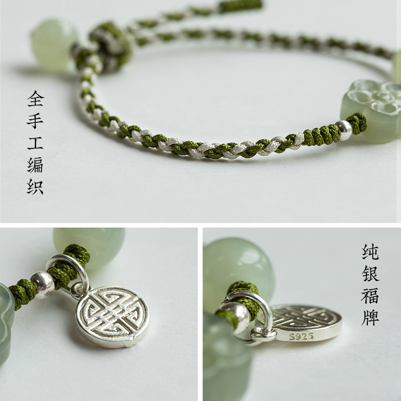 【福利特惠】天然和田玉福运梅花手链纯手工编织手绳女中国风礼物