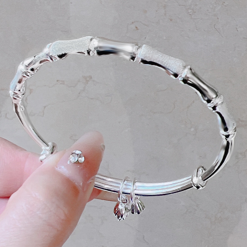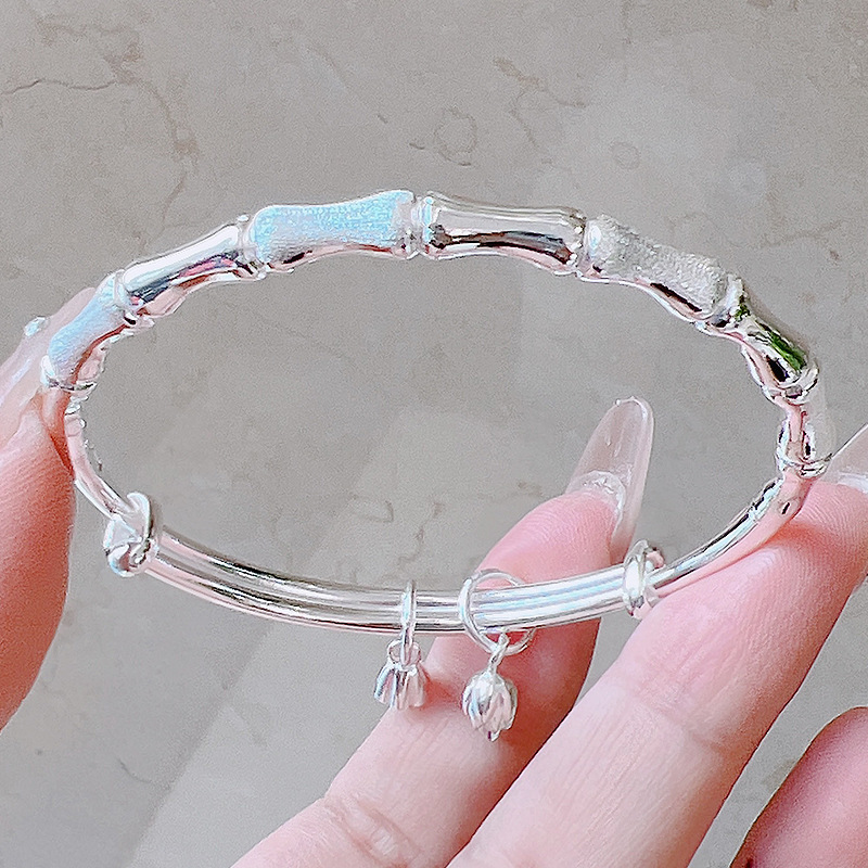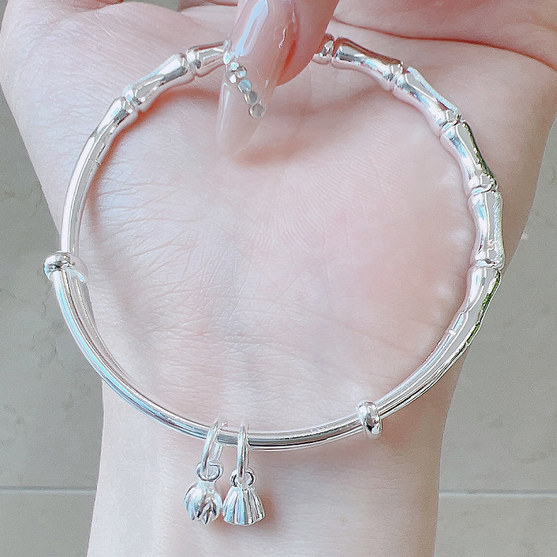 足9999手镯莲子莲蓬实心小众镯子网红新款礼物送女友银竹节纯银