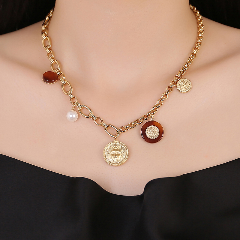 【女神礼物】RC Retro Chic意大利复古时尚首饰 玳瑁金币项链女生