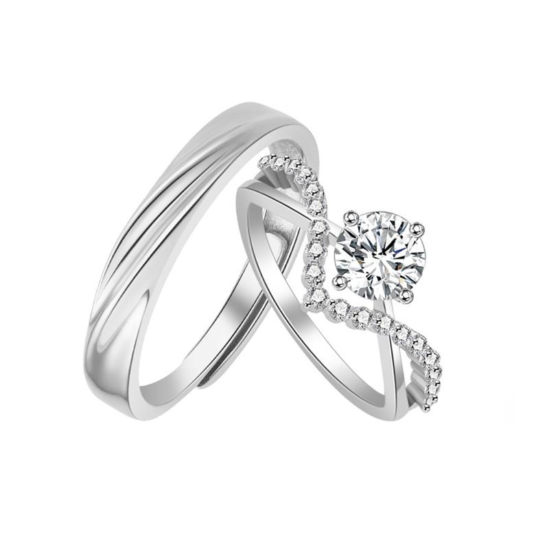 莫桑石钻戒纯银一对男女款白铂金结婚情侣对戒仿真钻石假求婚戒指