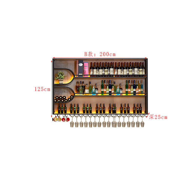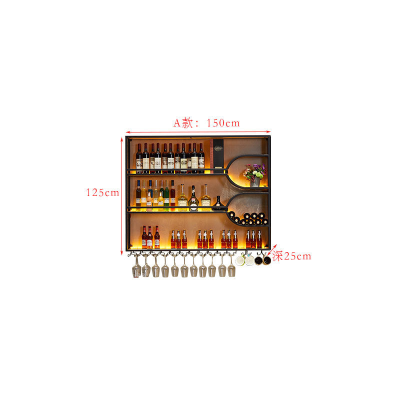 酒水吧台酒架壁挂带灯红酒柜餐厅展示架悬挂式墙上红酒创意置物架