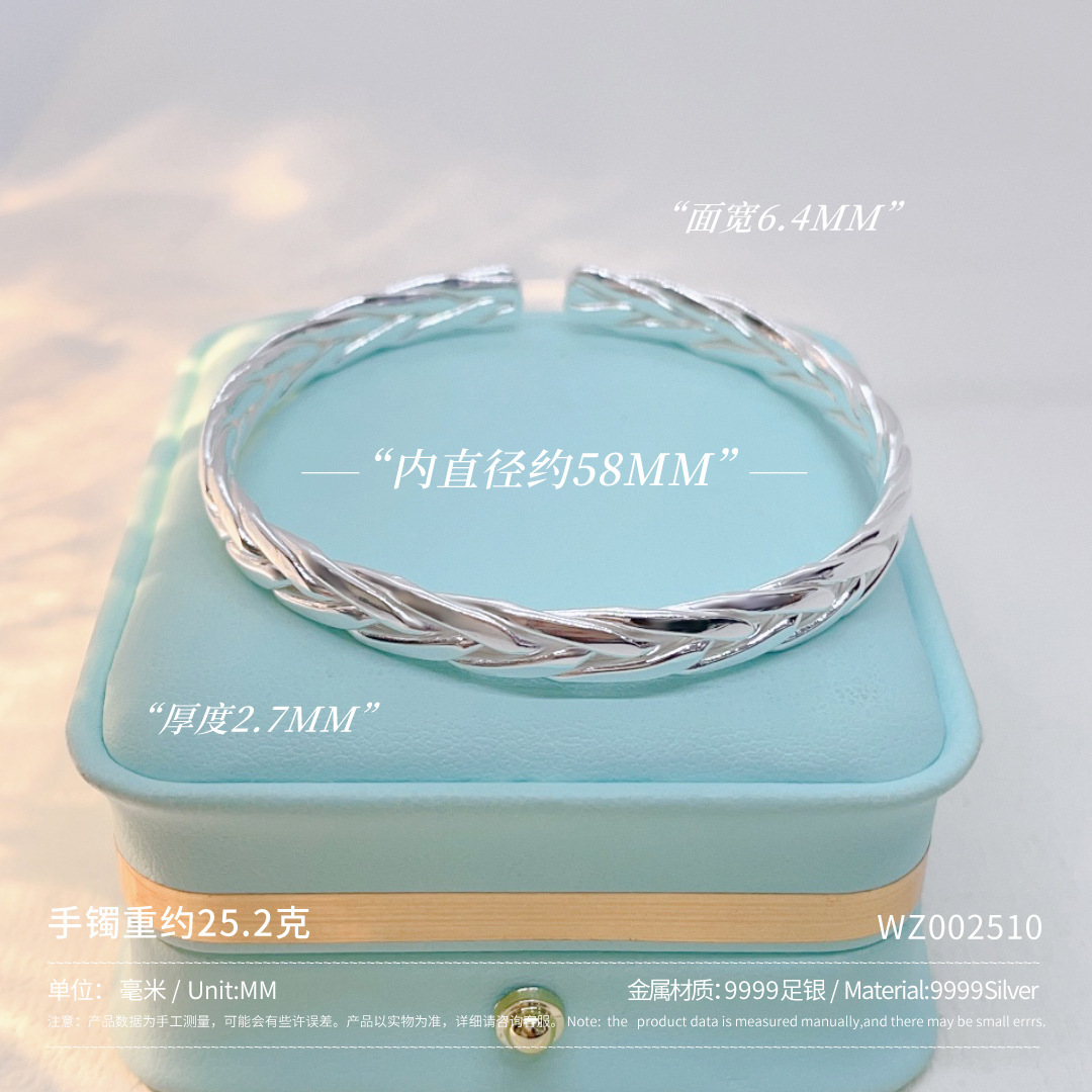 实心手环情人节送女友礼物镯子轻奢银手镯女麦穗9999纯银足手饰