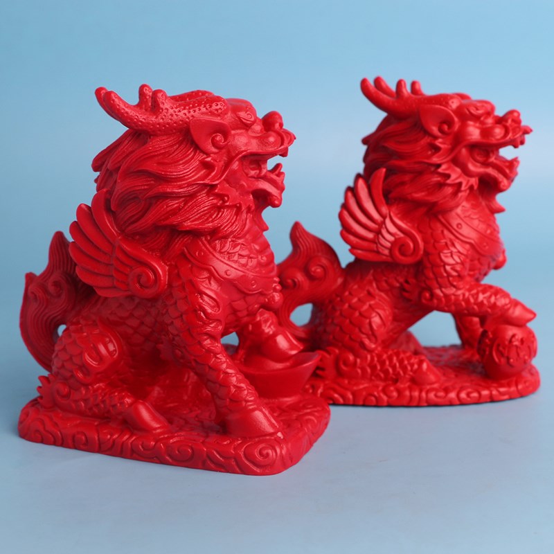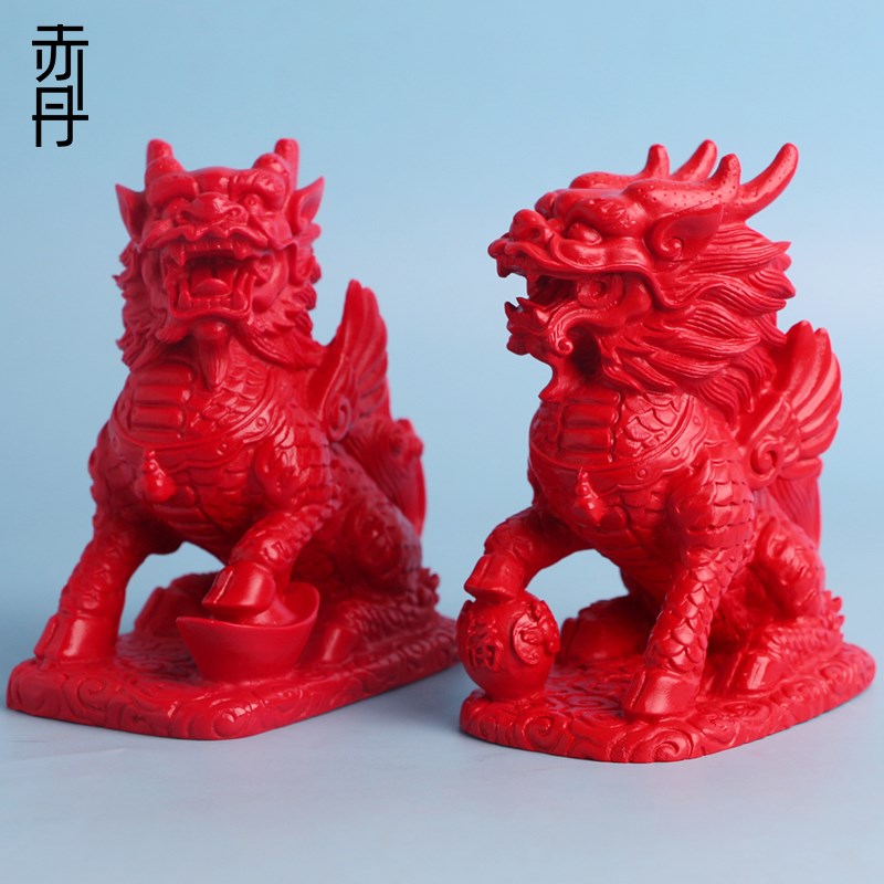 红朱砂大款一对麒麟摆件大号摆台家居办公桌面工艺品客厅书房摆饰