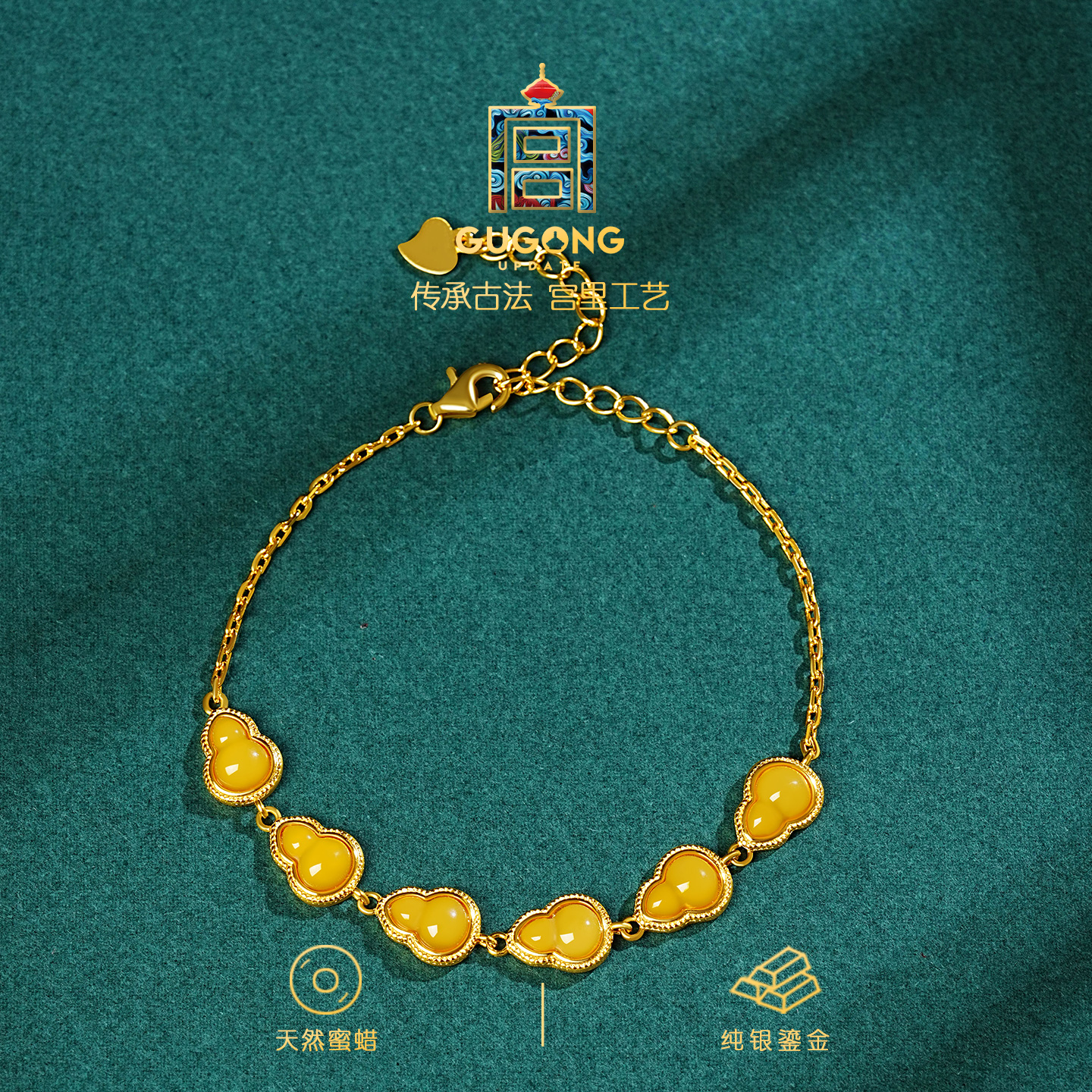 宫里上新葫芦手链女款纯银天然蜜蜡玉石首饰小众生日礼物送妈妈