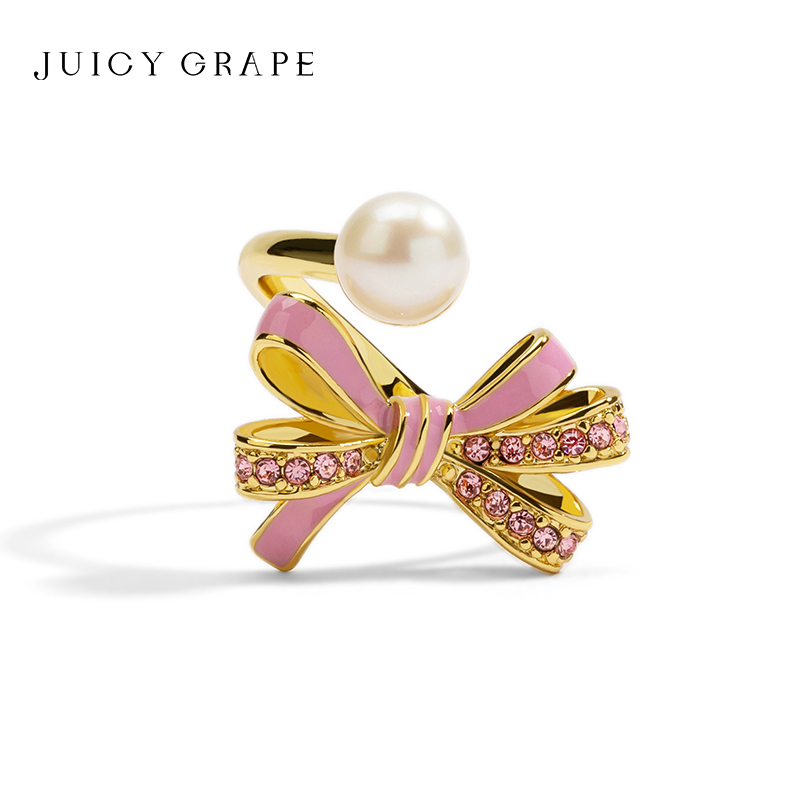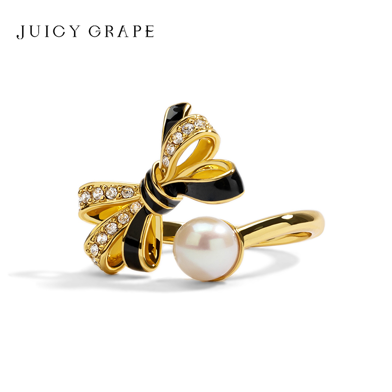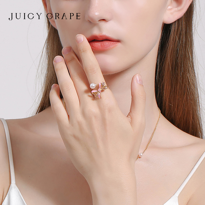 蝴蝶结戒指2025年新款潮女甜美ins风珐琅珍珠饰品胖手开口食指戒