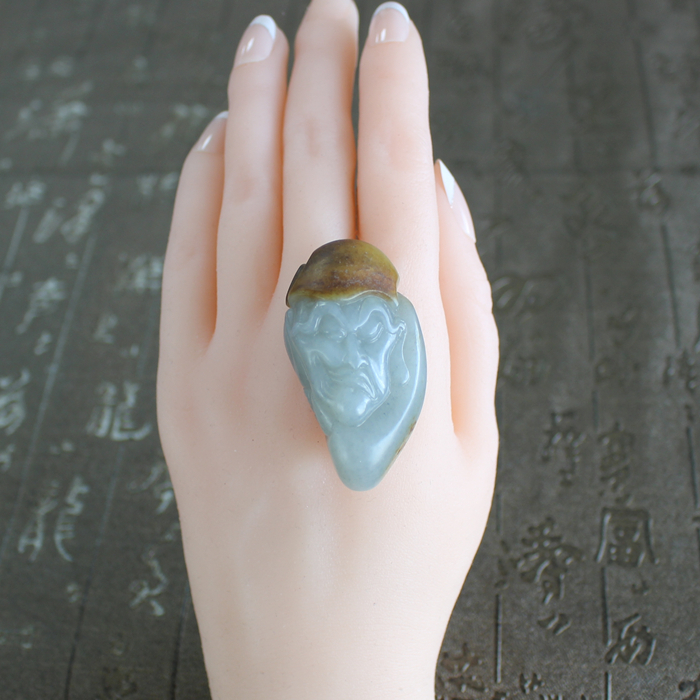 N独特老熟黄沁皮细腻青花籽料罗汉挂件朕品牌 杰子娜娜和田玉