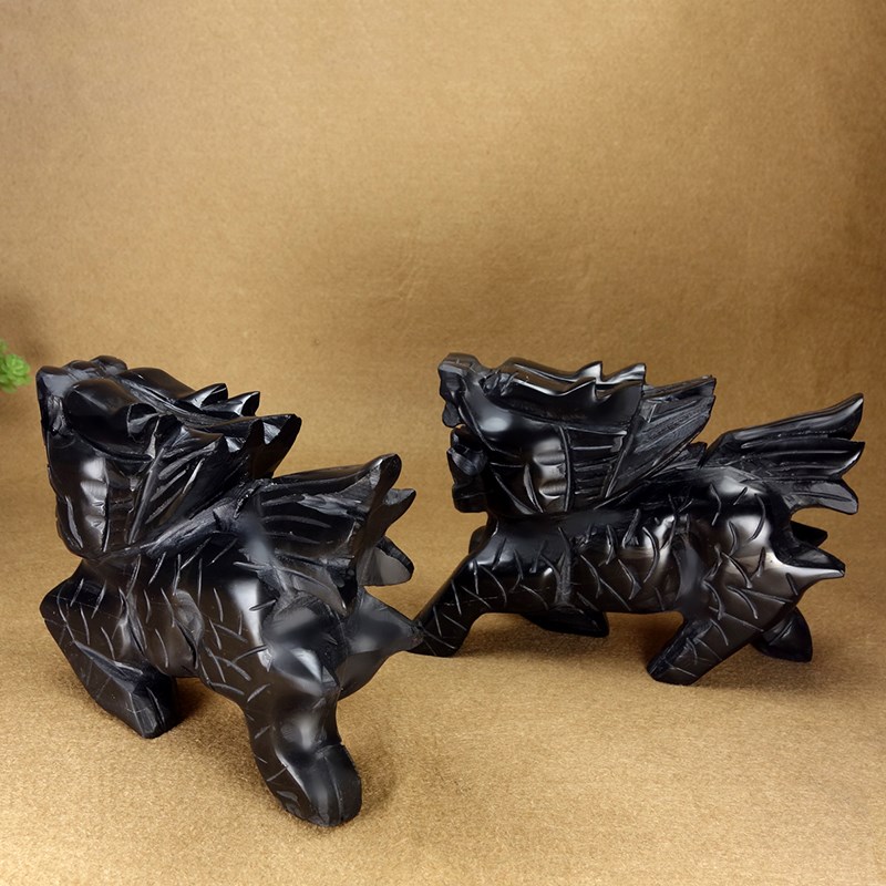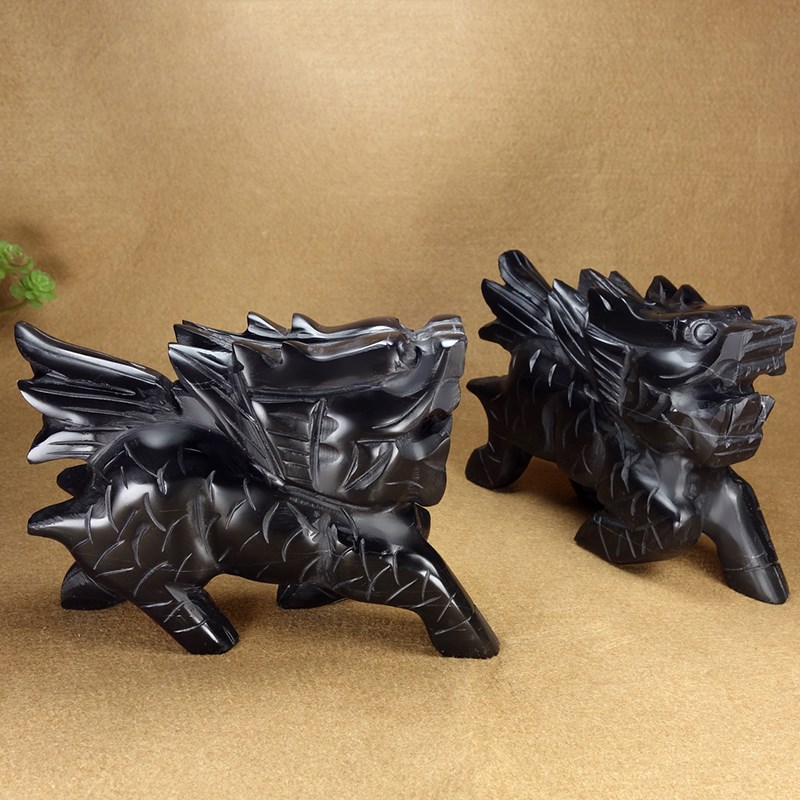 天然黑玉麒麟摆件黑墨玉雕刻麒麟玉石玉雕家居办公工艺品摆设