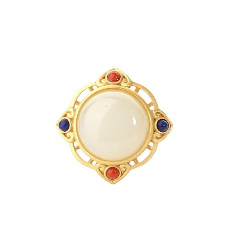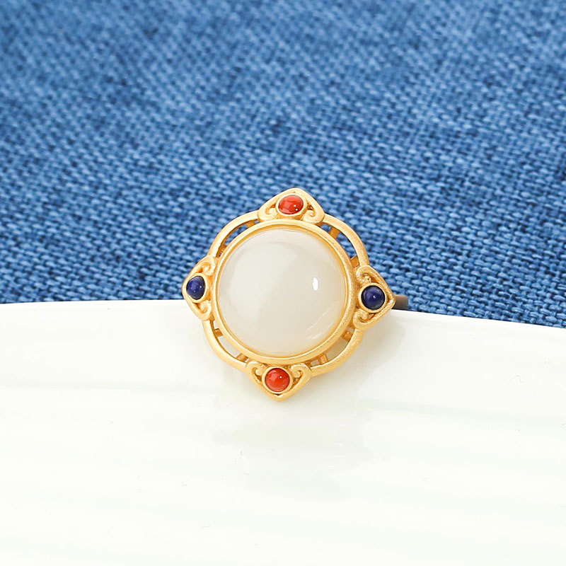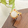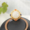 【新年转运】S925纯银和田玉白玉南红女简约时尚戒指镀金感开口指