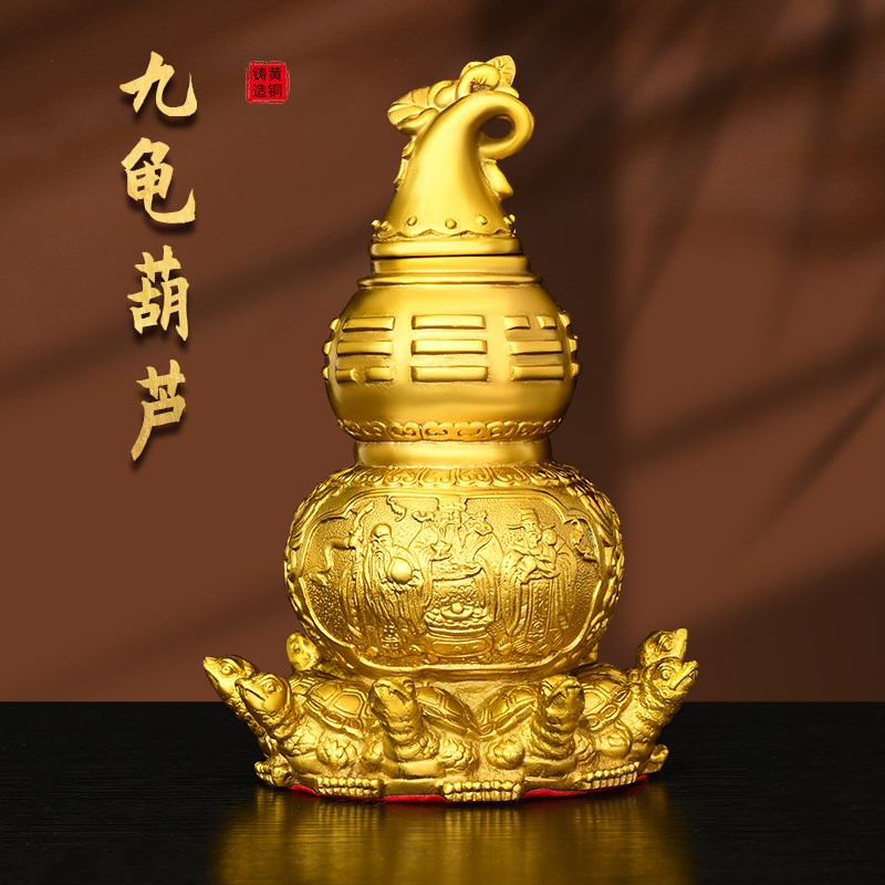 黄铜九龟葫芦摆件开口天医葫芦家用桌面装饰品八福禄龟办公室摆件