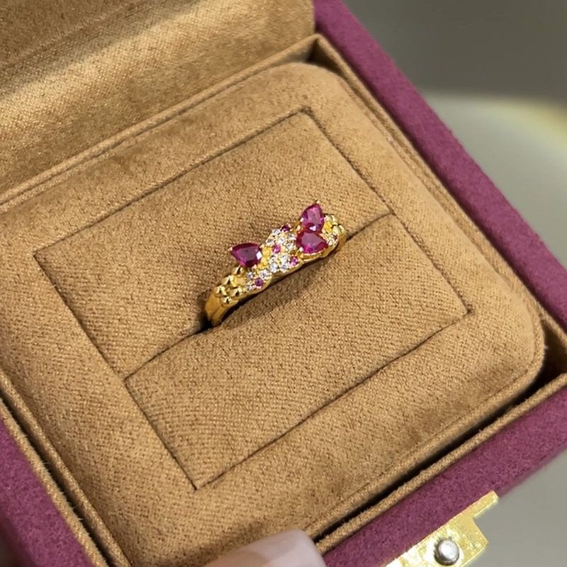 XBK彩宝红戒指复古百搭水滴款刚玉法式镶嵌满钻显白宫廷风食指戒