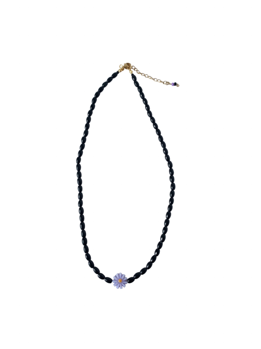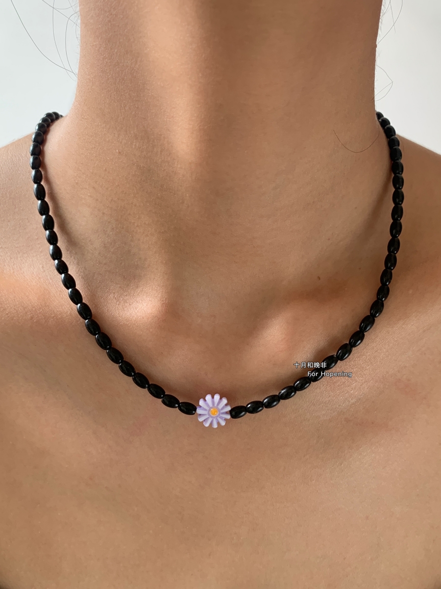 十月和晚非 原创小众设计雏菊小花贝壳黑玛瑙串珠项链百搭锁骨链