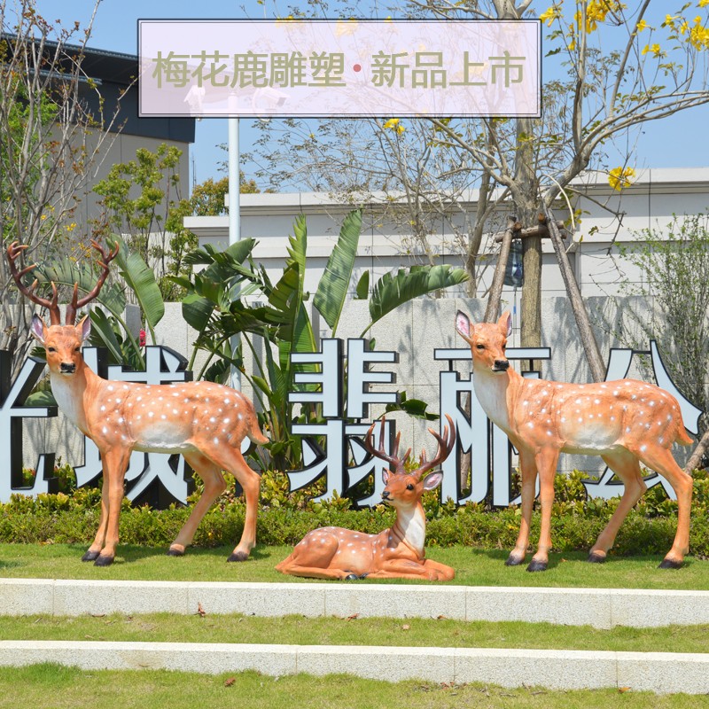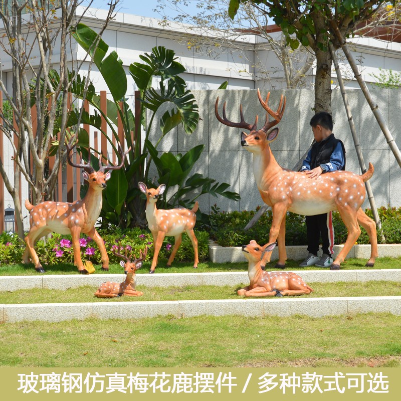 玻璃钢鹿雕塑户外梅花鹿仿真动物园林景观草坪庭院装饰花园小摆件