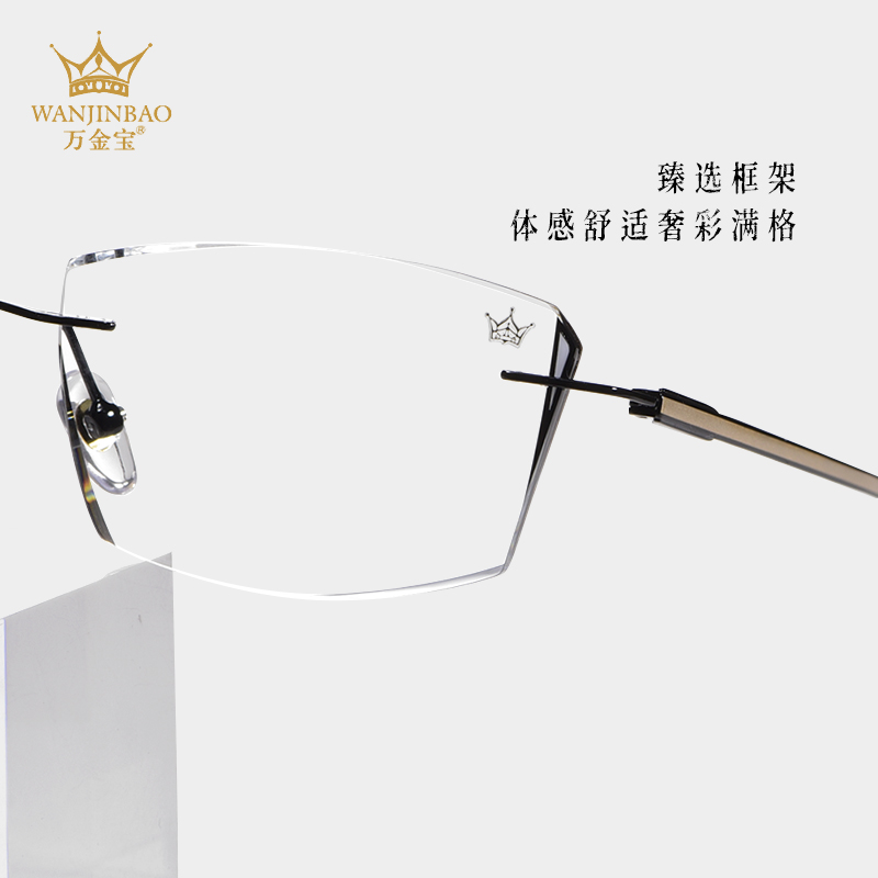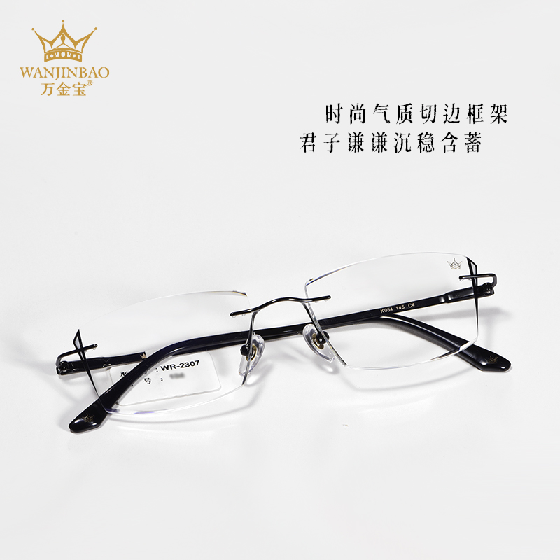 万金宝无框钻石切边男士定制眼镜小脸方框轻奢时尚超轻β钛WR2307