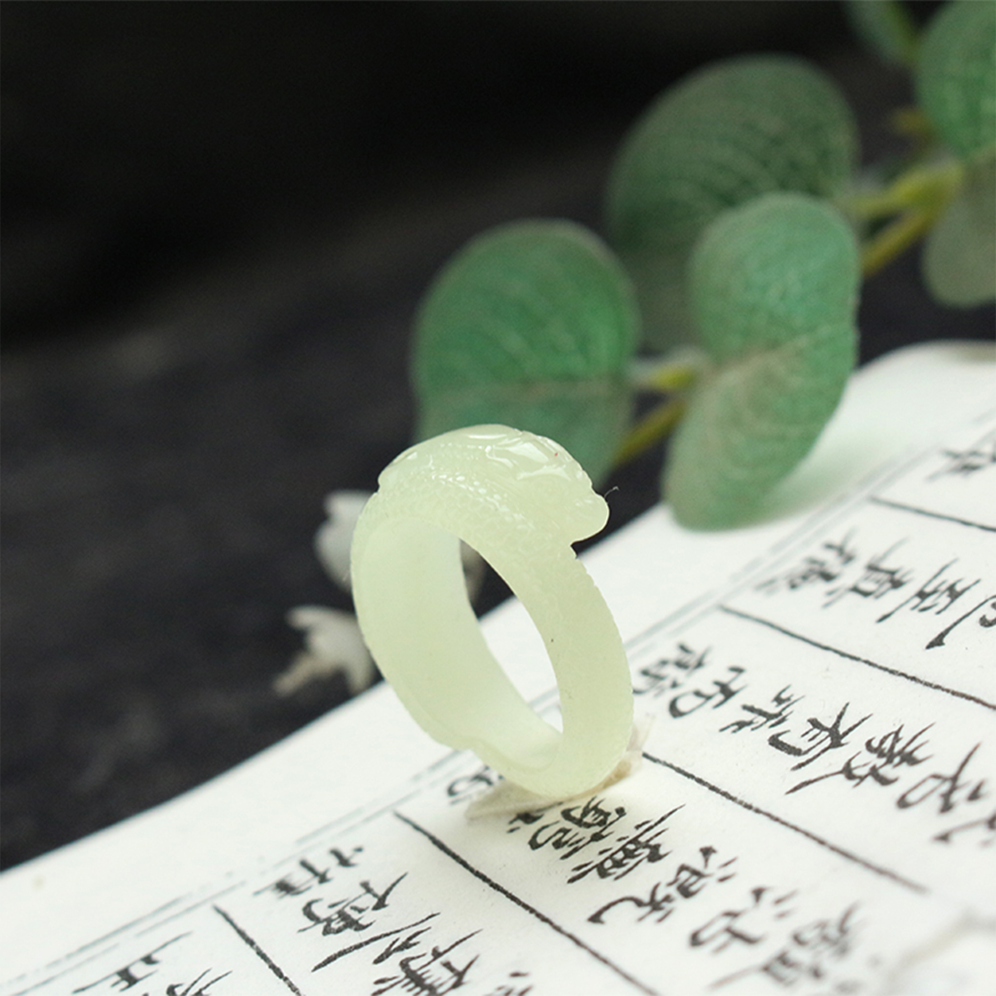 雕刻和田玉戒指经典原创黄口料螭龙指环新款孤品19mm男女款食指戒