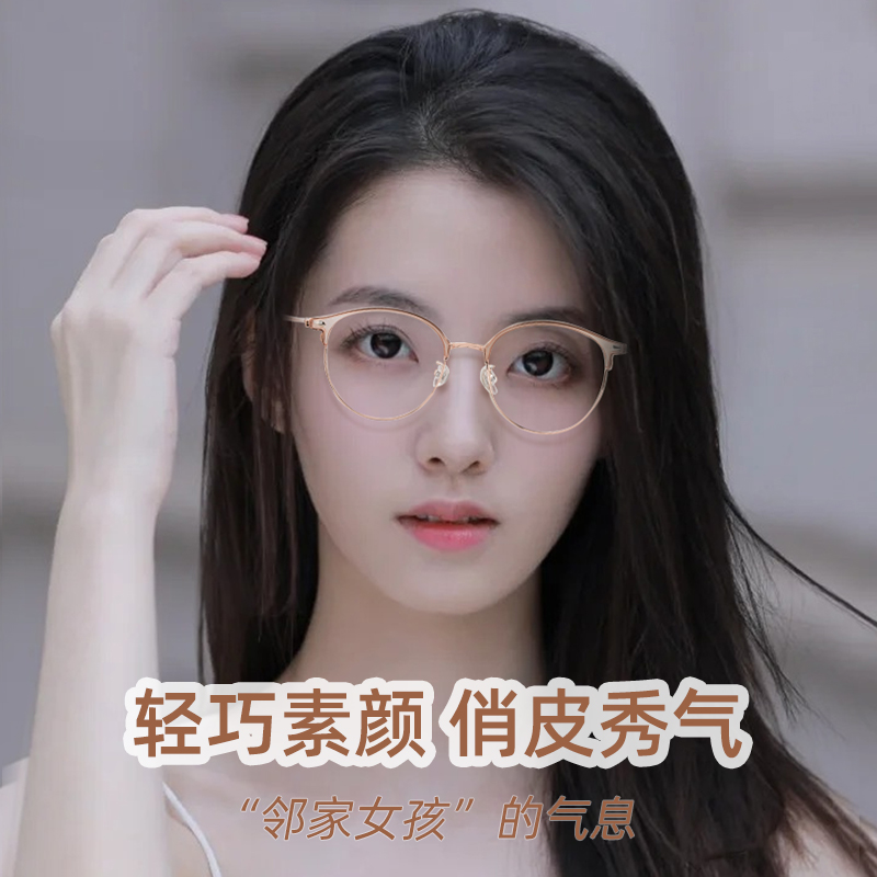 钛架近视眼镜女款小清新纯欲素颜框潮流专业网上配镜近视可配度数