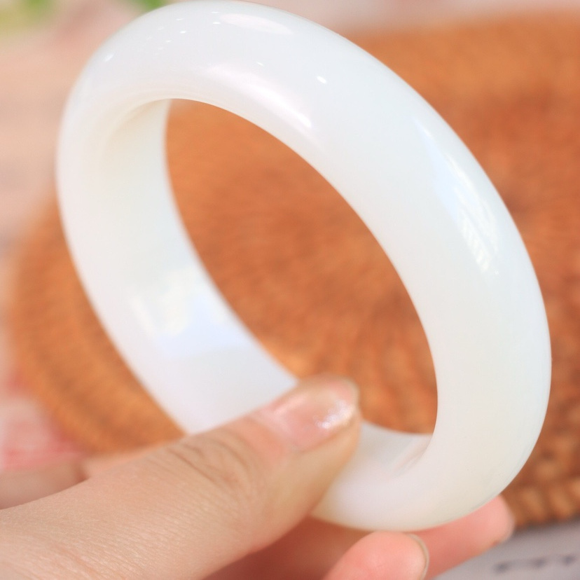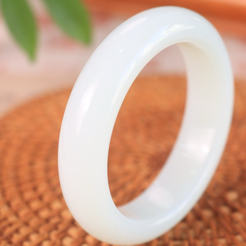 新疆料和田玉籽料羊脂白玉正圈宽条轮胎平安镯女款手镯官方旗舰店