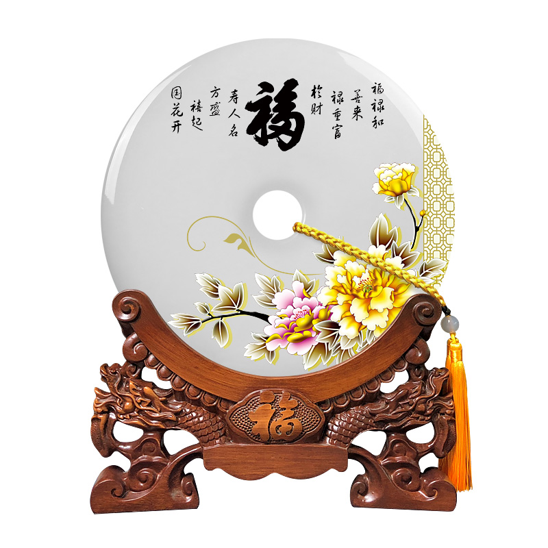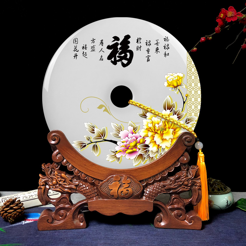 玉石平安扣摆件天然玉石客厅招财家居电视柜玄关装饰桌面简约乔迁