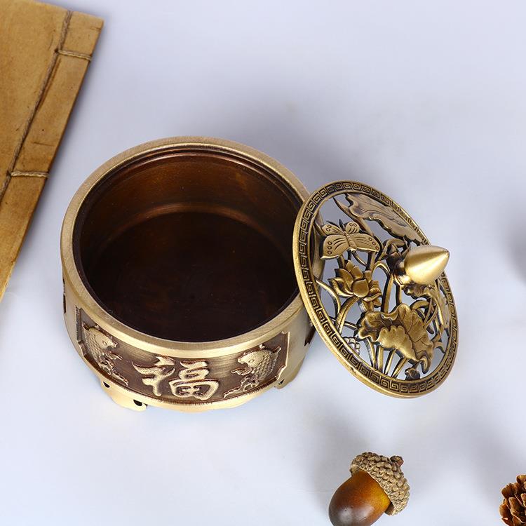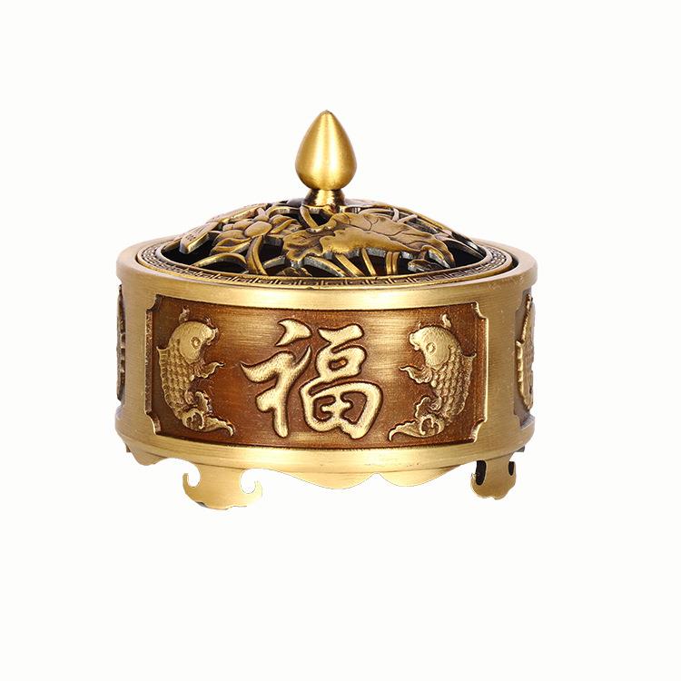 直供 仿古浮雕连年有福熏香炉 香炉 盘香炉铜摆件家居办公装饰品