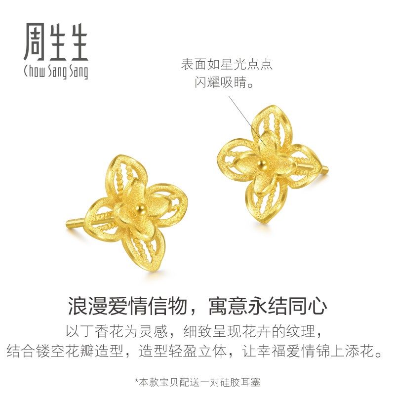 圣诞礼物周生生黄金足金生生有囍丁香花耳钉黄金耳饰95304E定价
