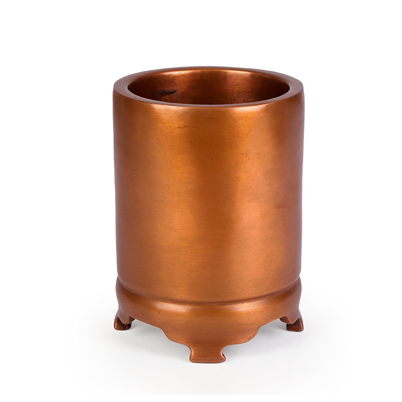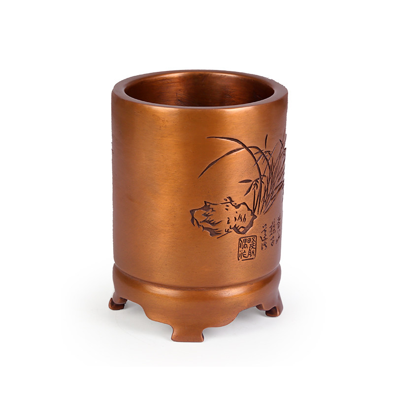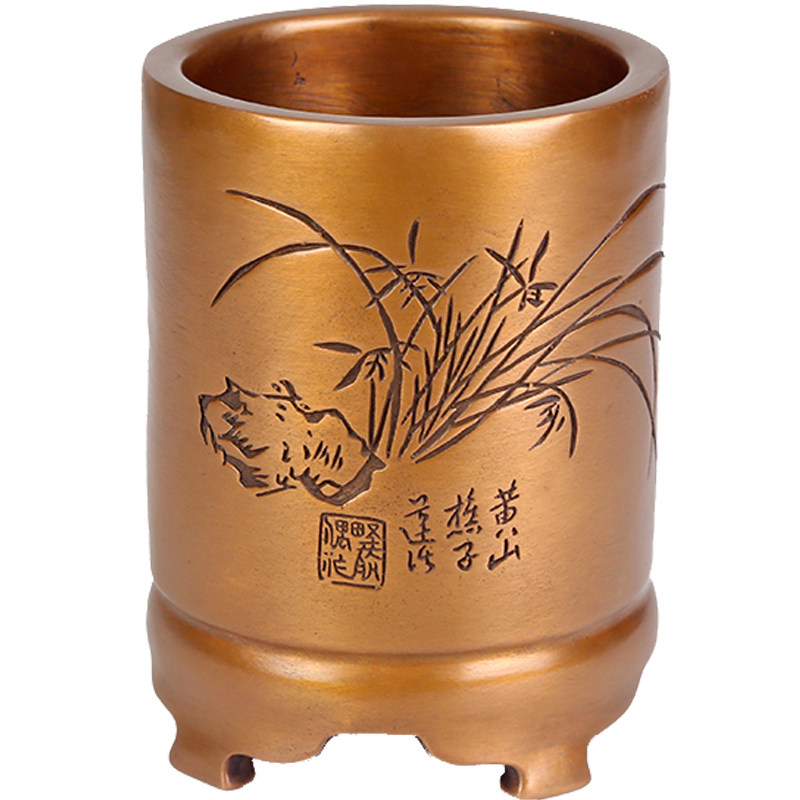 铜聚德 纯紫铜兰草笔筒办公室商务礼品摆件 家居书房装饰品摆设
