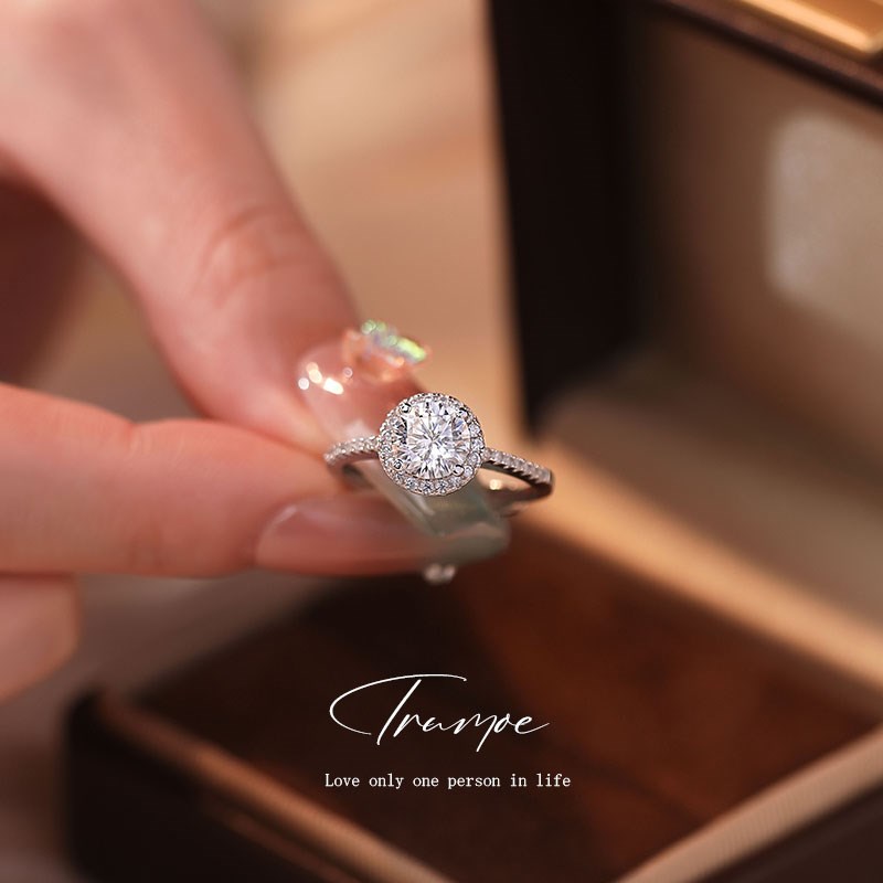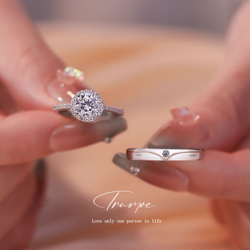初沫伊莫桑石戒指女一克拉圆包纯银铂金情侣对戒订求婚钻戒送老婆