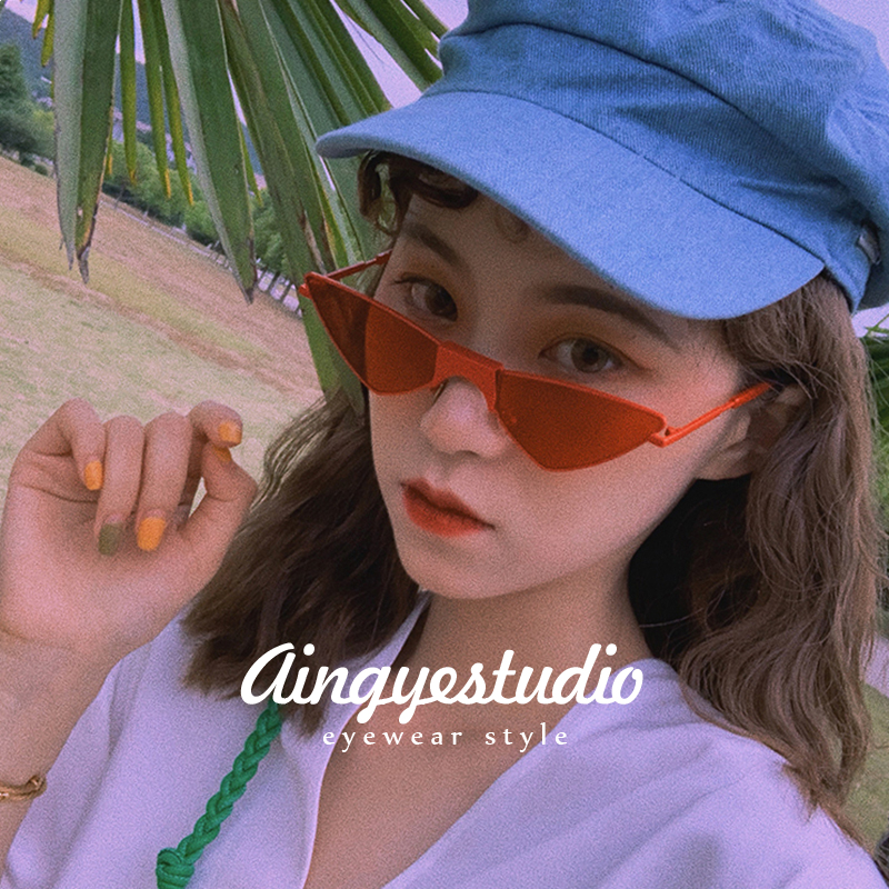 黄色眼镜女三角形猫眼墨镜男士潮抖音网红同款街拍装饰个性太阳镜