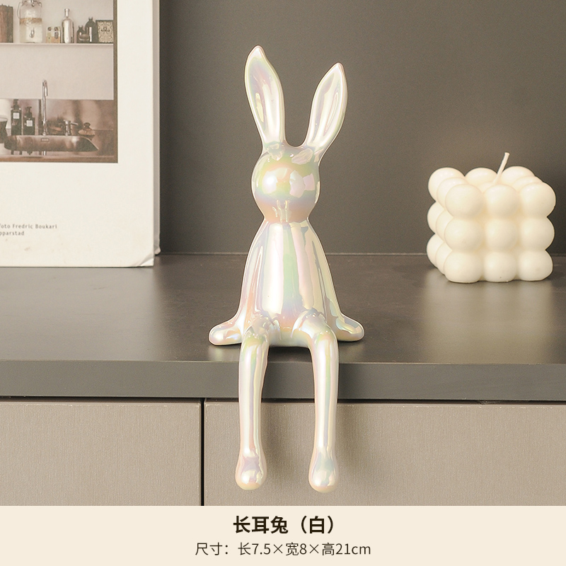 兔子治愈情绪小坐k姿摆件软装高级感客厅电视柜酒柜办公桌面装饰