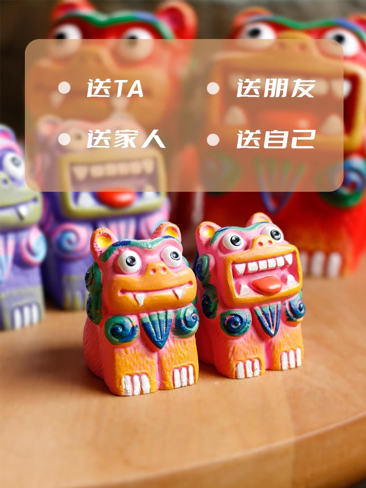 狮三百方脑壳树脂卡通可爱石敢当狮子车载桌面摆件朋友创意礼物