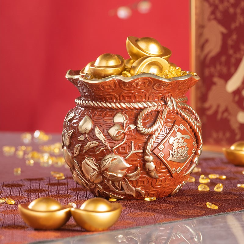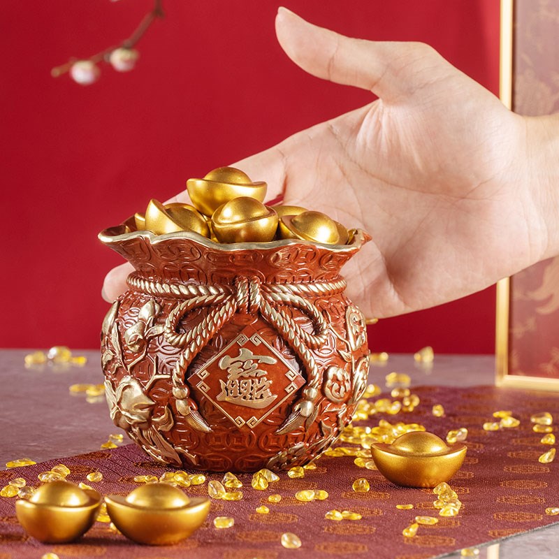 朱炳仁铜 五福聚宝袋 桌面装饰铜摆件聚宝盆开业礼品存钱罐