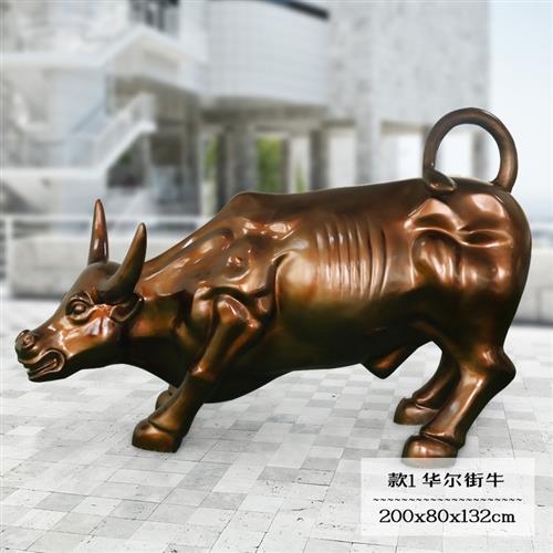 仿铜华尔街牛雕塑户外大型牛摆件玻璃钢美陈广场商场仿真动物摆设