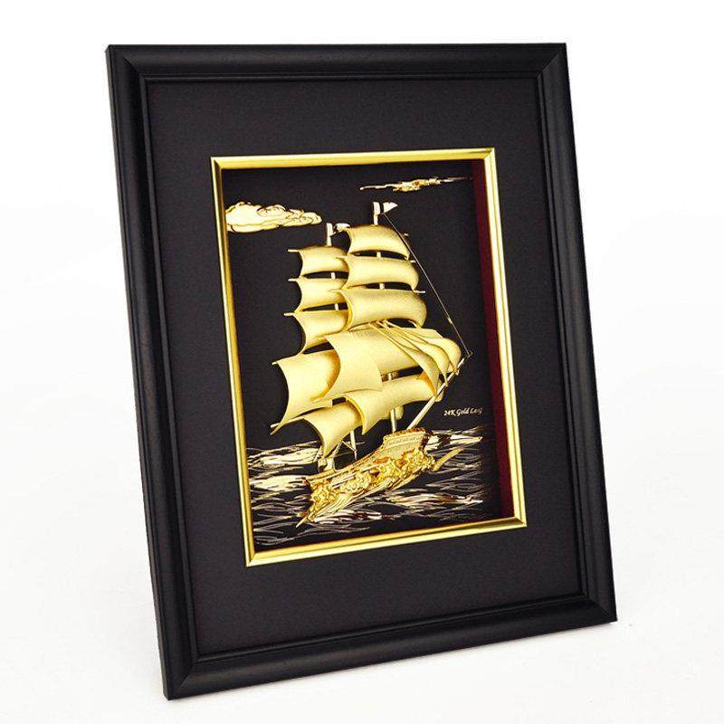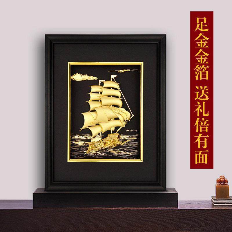 金箔画一帆风顺帆船轻奢办公室装饰摆件玄关高档商务活动开业礼物