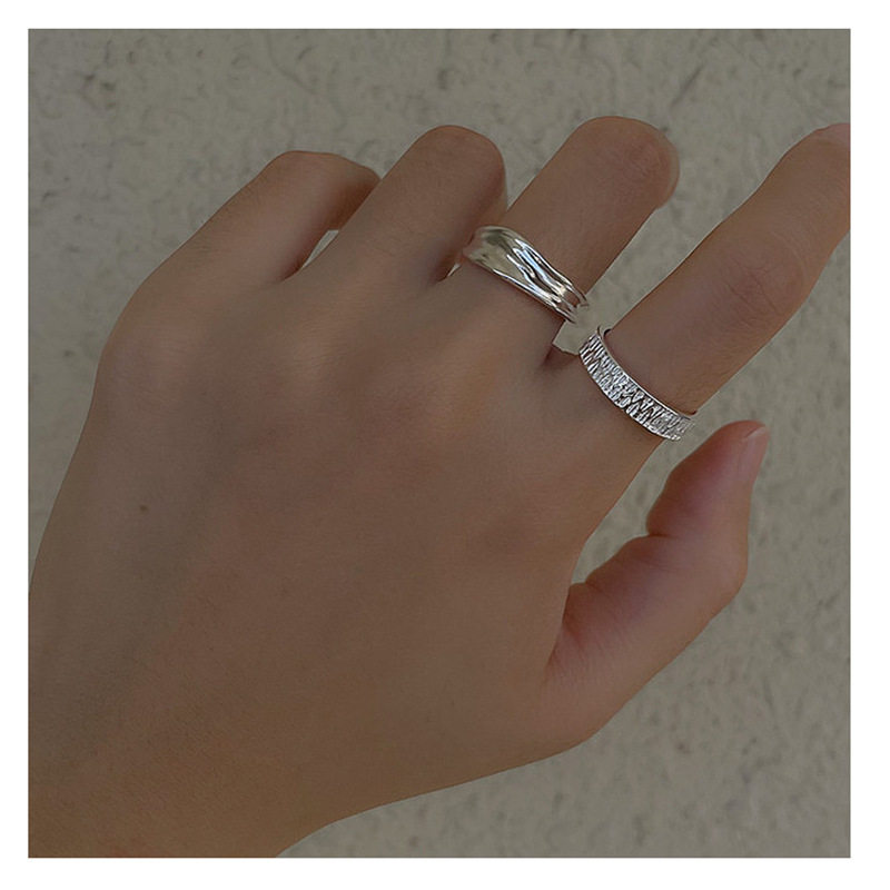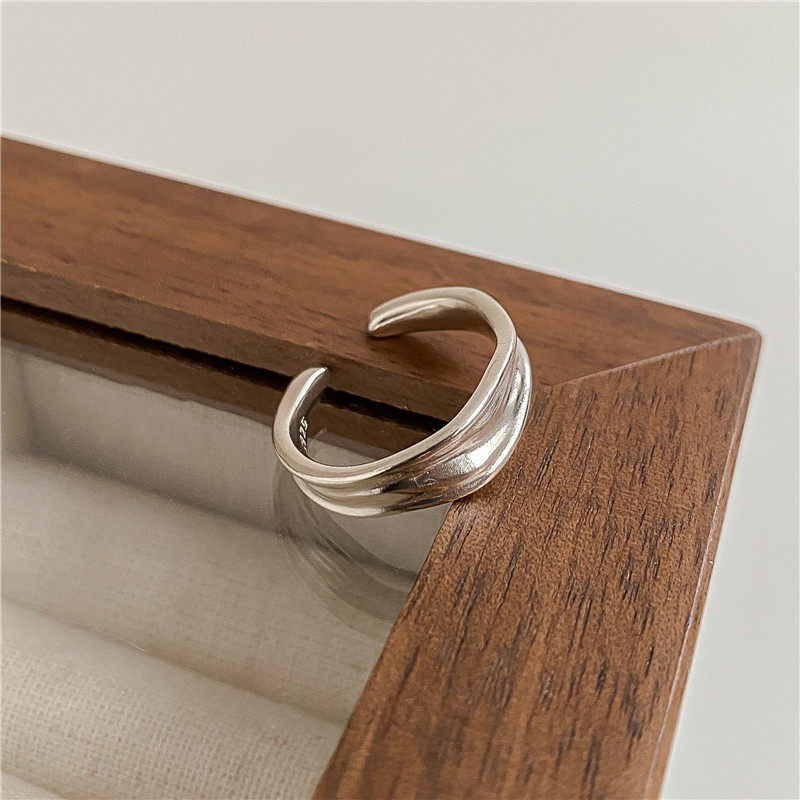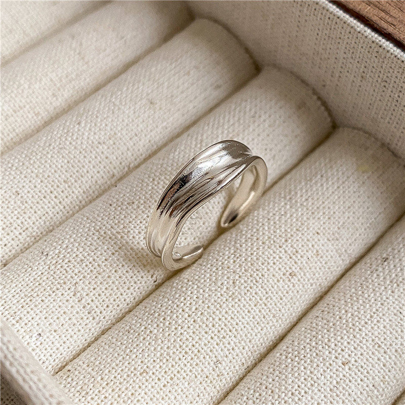 S925纯银小众设计感不规则金属戒指韩国简约个性肌理感指环