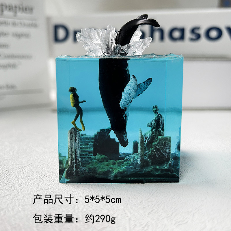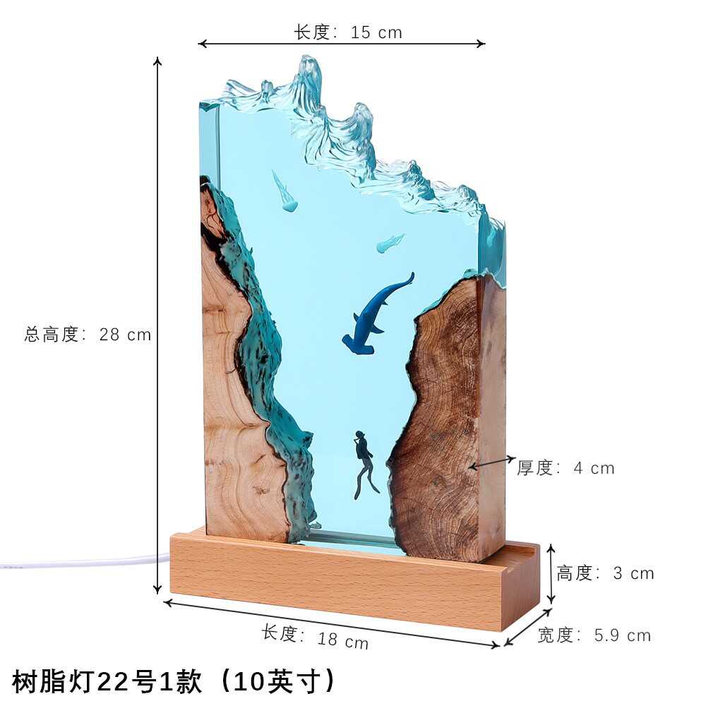 海洋夜灯家居饰品卧室摆件潜水员鲸鱼创意树脂装饰桌面摆件礼物