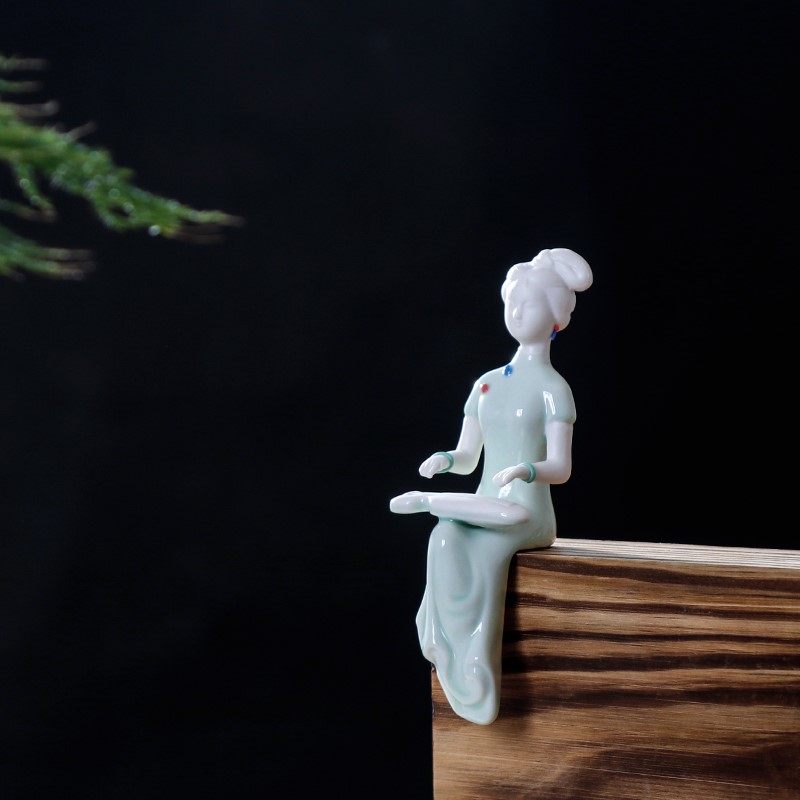 琴棋书画侍女陶瓷工艺品家居博古架风化木摆设装饰品坐姿人物摆件