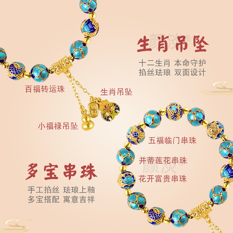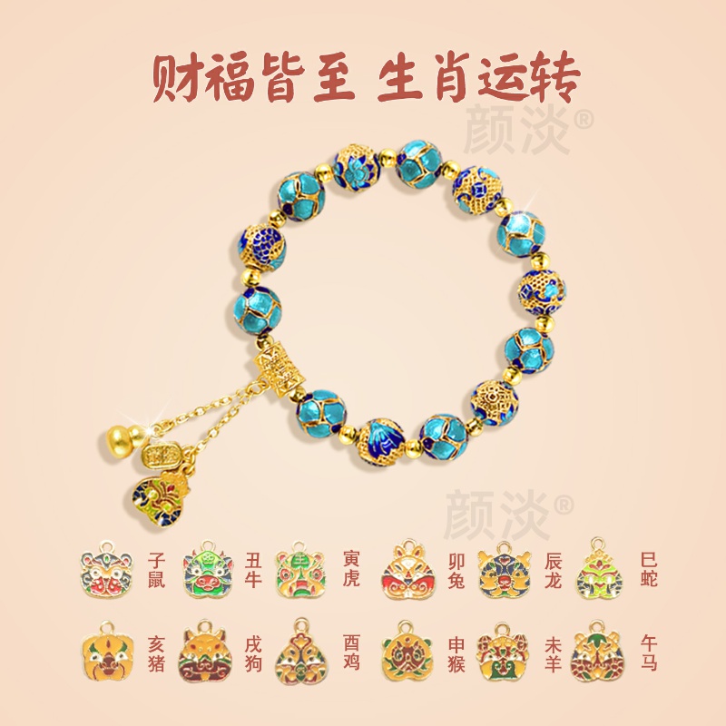 颜淡一莲幽梦 十二生肖景泰蓝掐丝珐琅手链非遗古法手串国风礼品