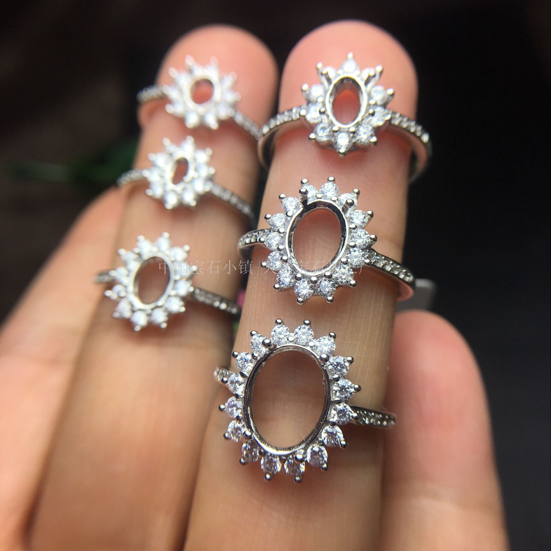 s925纯银3*5 4*5 4*6 5*7 6*8 7*9 8*10mm戒指空托翡翠彩宝戴妃新