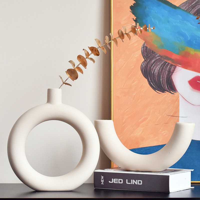北欧is侘寂风白色花瓶创意客厅玄关酒柜陶瓷Q工艺摆件家居装饰品