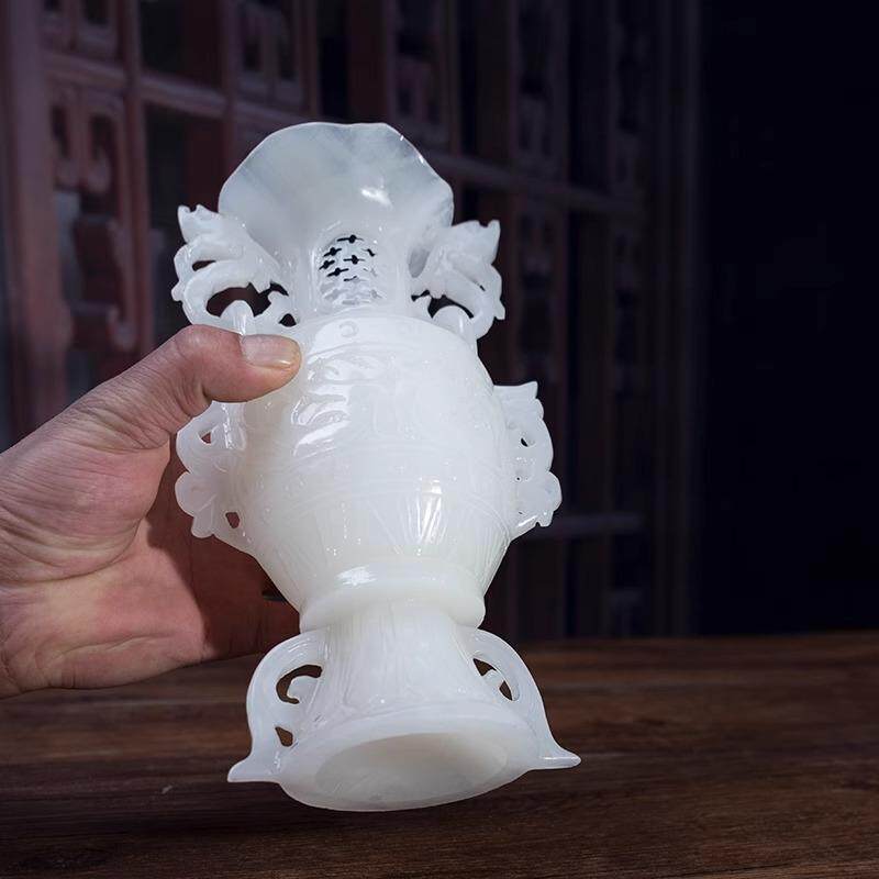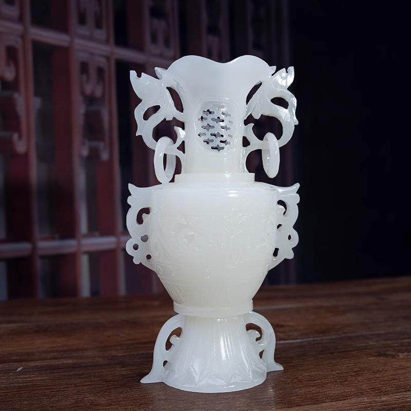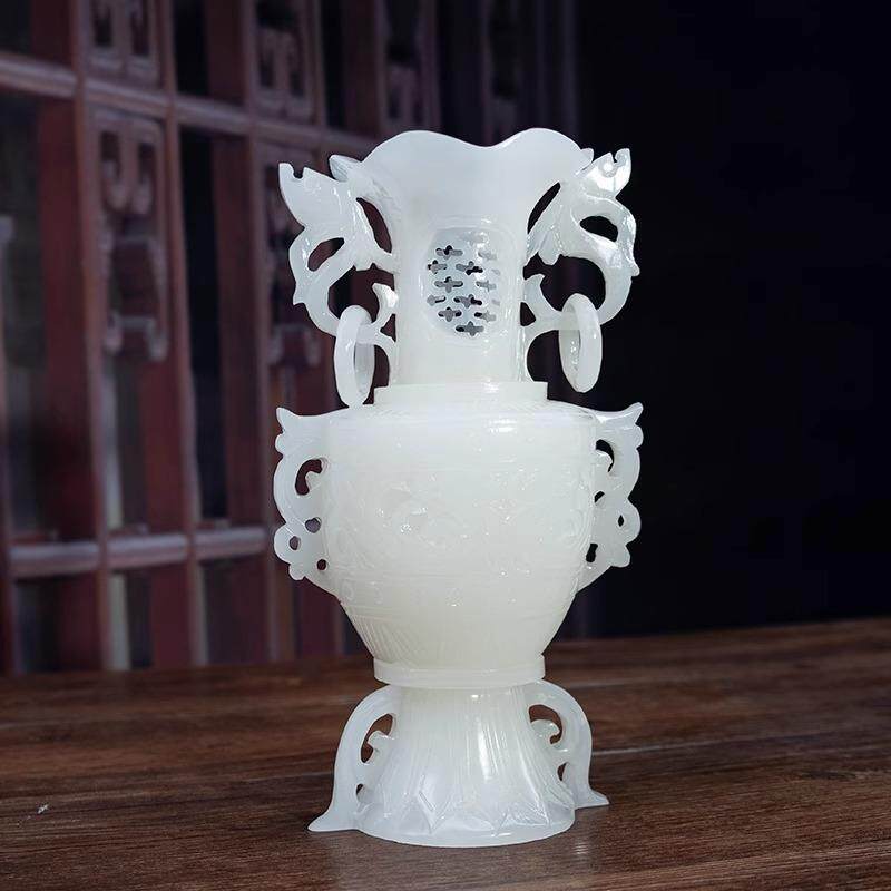 天然玉石仿古镂空花瓶摆件玉雕古风平安中式礼品客厅玄关装饰摆设