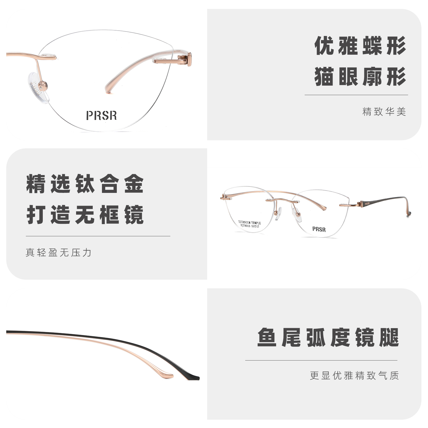 [帕莎狸猫框]25年新品优雅无框眼镜架温柔轻盈钛腿眼镜架PJ79013