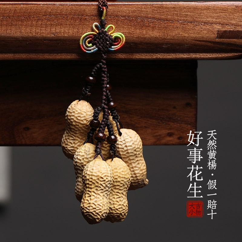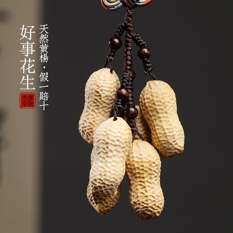 天然小叶黄杨木好事花生手把件文玩汽车挂件包包装饰品挂饰小摆件
